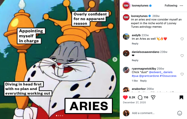 So we created a character, The ACME Intern: a fully realized 22-year-old chronically online super-fan who’s been given the keys to the Looney Tunes social handles and is pretty sure no one is watching. We gave him hobbies, interests, a whole back story—and yes, even a complete astrological birth chart. (He’s an Aries, by the way).